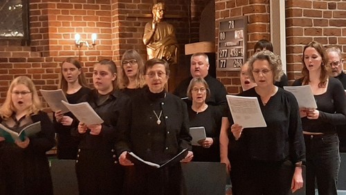 Om engle synger smukt og om himlens foretrukne instrument er harper er svært at vide, men sikkert er det, at der bliver både smuk sang og toner fra en harpe når kirkens voksenkor synger musikgudstjeneste. Juleforberedelserne skal jo være en blanding af både tradition og fornyelse, så her bliver lidt af det hele. Harpenist Joost Schelling har været i adventstidens musikgudstjenester i hele dette årtusinde, men det er vist første gang at det primært bliver med det blandede kor. Kirkens blandede voksenkor består af en snes dygtige sangere jævnt fordelt i alle aldre fra teenagere til folkepensionister. De synger gamle og nye julesatser, nogle akkompagneret af harpenist Joost Schelling og andre a capella. Sognepræst Leif Nielsen læser tekster til dagen og adventstiden og Kevin Laplante akkompagnerer fællessalmerne fra kirkens orgel. Nicolai Nielsen leder musikken. Gudstjenesten tager en times tid, der er gratis adgang og alle er velkomne.